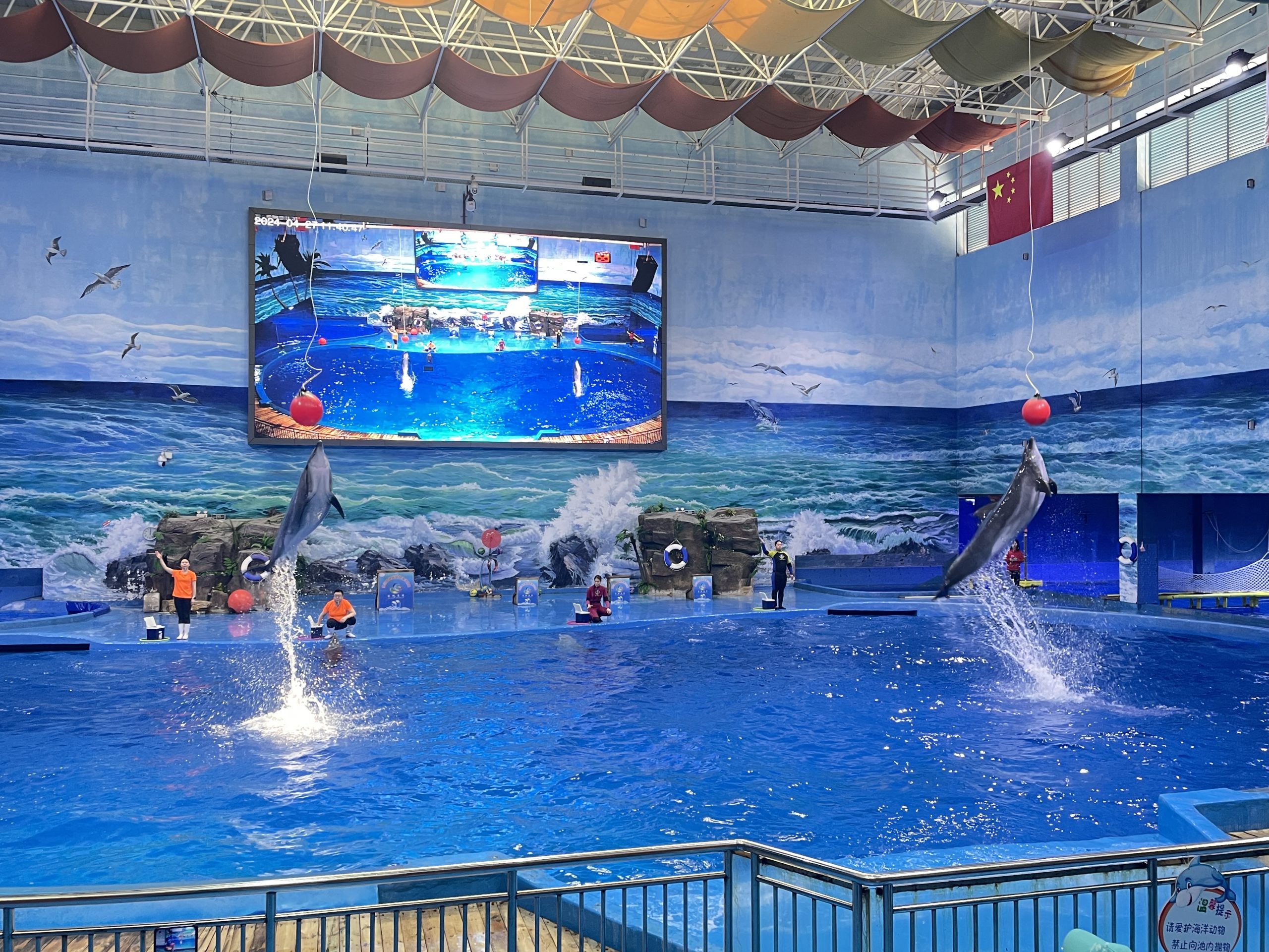 云贵高原地区第一只人工环境下繁育且自然分娩的海豚宝宝“黔灵”将要迎来一周岁生日啦!为了庆祝小海豚的健康成长,多彩贵州城极地海洋世界在2024年4月27日上午给海豚宝宝黔灵举办了一场盛大的周岁生日会活动,并向社会招募了一批小朋友一起参加庆生活动。
